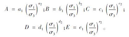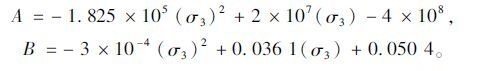 其中系数A和B可以分别与围压应力σ3按照二次多项式形式建立如下回归关系式。