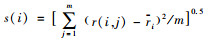 式中,smin,smax分别为{s(i)|i=1~n}的最小值和最大值; 相对重要性程度参数值bm=min{19, int[smax/smin+0.5]}=19, min和int分别为取小函数和取整函数。