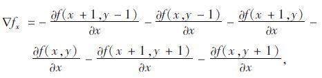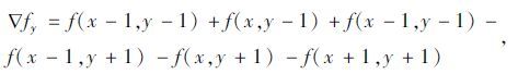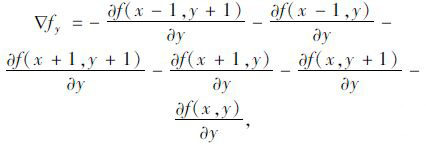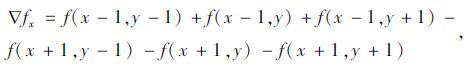 式中,▽fx,▽fy分别表示水平梯度和竖直梯度。由于处理的图像是数字量的且灰度级变化也是有限的,变化产生的最短距离是两相邻像素之间,故取步长Δx=1。则有: