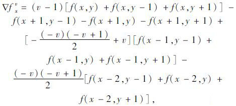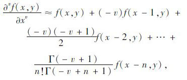 1 分数阶偏微分的差分表达式根据分数阶微分的Grumwald-Letnikov(G-L)定义[10-11],导出一元信号f(t)的差分近似表达式为: