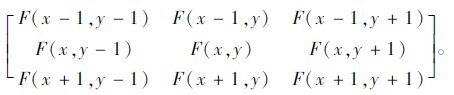 设一副图像的灰度函数为F(x,y),取其3×3像素邻域,如式(4)所示: