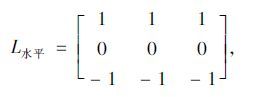 为了简化运算,在图像处理中常用差分近似代替微分。对于离散灰度函数的3×3区域,Prewitt算子沿不同的方向分为水平梯度和竖直梯度,其具体的表达式分别为式(5)、(6),算子模板见式(7)、(8)。