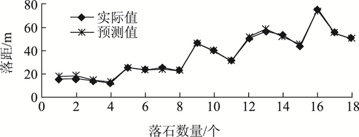 | 图 5 落石水平运动距离的测试样本的预测 Fig. 5 Prediction of test sample of rockfall horizontal movement distance |