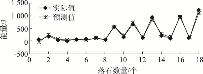 | 图 9 落石能量的测试样本的预测 Fig. 9 Prediction of test sample of rockfall motion energy |