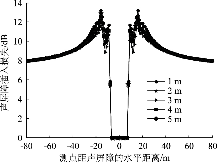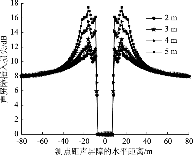 | 图 5 高度对声屏障插入损失的影响 Fig. 5 Impact of height on sound barrier's insertion loss |