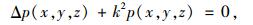 在声场区域中,声压p(x, y, z, t) 是关于受声点位置与时间的偏微分方程,且满足Helmholtz方程,即: