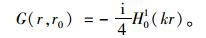 式中,G(r, r0) 为无声屏障时r点处的声压;H10为第一种0阶的Hankel函数。