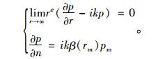 声屏障作为散射体,其散射声压在无穷远处满足Sommerfeld辐射条件[22]与声屏障局部反应的边界条件,即: