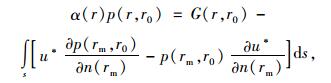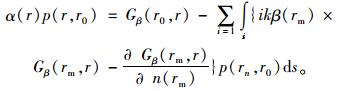 式中,n(rm) 为在声屏障表面rm处的外法向方向;α(r) 为声场中位置系数,当r不位于声屏障表面时,α(r)=1;当r位于声屏障表面但位于其角点上时,α(r)=0.5;当r位于声屏障表面角点时,α(r)=θ/2π。