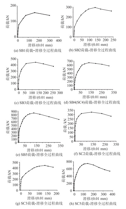 | 图 8 各试件荷载-滑移全过程曲线 Fig. 8 Load-slip whole process curve of each specimen |