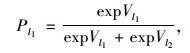 式中,Pl1为旅客选择公路运输方式出行的客流分担率;Vl1为旅客选择公路运输方式出行的效用函数;Vl2为旅客选择铁路运输方式出行的效用函数;Pl2为旅客选择铁路运输方式出行的客流分担率。