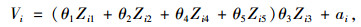 式中,Vi为第i种运输方式的效用函数值;θ1,θ2,θ3,θ4,θ5分别为影响经济性、舒适性、安全性、快捷性和方便性的效用值参数,即偏好调整系数;ai为常系数。