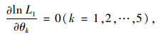 由式 (18)~(19) 可以看出lnL1是关于θk(k=1, 2, …, 5) 的凸函数,对lnL1求θk的偏导,使其等于0,则可以求解出使lnL1达到最大值时的θk。