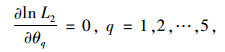 由式 (22) 和式 (23) 可以看出lnL2是关于θq(q=1, 2, …, 5) 的凸函数,对lnL2求θq的偏导,使其等于0,则可以求解出使lnL2达到最大值时的θq。