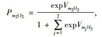 式中,Vmj|l2为个体w2在已知l2的条件下选取mj的效用函数。根据式 (15) 可以求解出Vmj的表达式为: