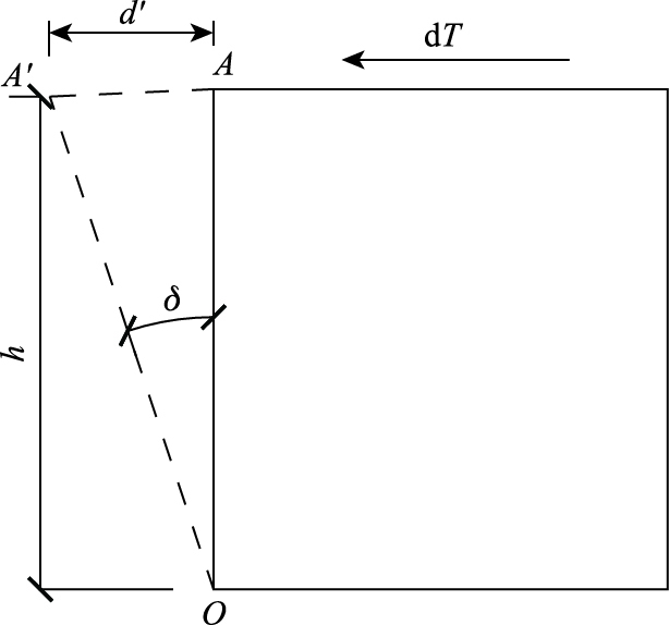如图 2所示为滑面剪切势能的计算模型,这一滑面单元在剪切力作用下发生剪切变形,微段上剪切力的方向与滑动方向在同一面上,因此在剪切力作用下滑面微单元沿滑动方向发生一个剪应变h,且剪应变h的大小近似等于∠AOA′。