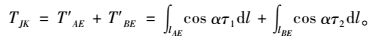 则路基浸润线以上和以下的滑面法向力沿虚位移方向上提供的抗滑力分别为TEB,TAE,其代数和: