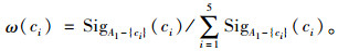 4.4 基于粗糙集的指标权重确定设S=(U, A, V, f)是一个信息系统,A={a1,a2,…,am},属性ai∈A在A中的重要性为SigA-{ai}(ai),则ai∈A的权重定义为[9]: