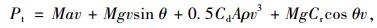 式中,q为发动机摩擦系数;N为发动机转速;V为发动机排量;ε为车辆传动效率;η为柴油机效率; U为常量,其值取决于包括在内的常量;Pa为发动机运行及其车辆附件(空调等)损耗的功率;Pt为车辆总消耗功率,其计算式为: