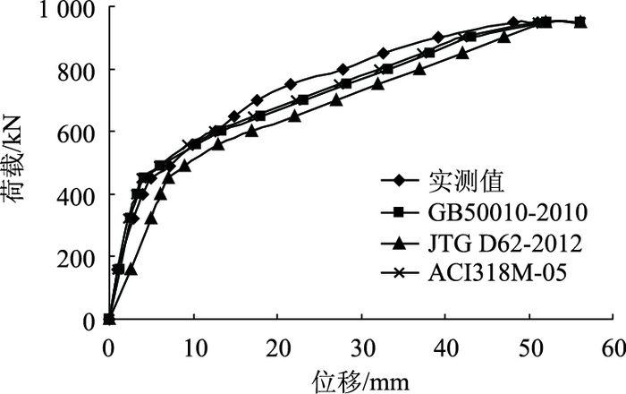 | 荷载 | 实测值 | GB50010—2010 | JTG D62—2012 | ACI318M-05 | |||