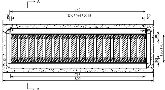 | 图 5 模型梁顶板锚钢加固 Fig. 5 Steel anchoring reinforcement of model beam roof |