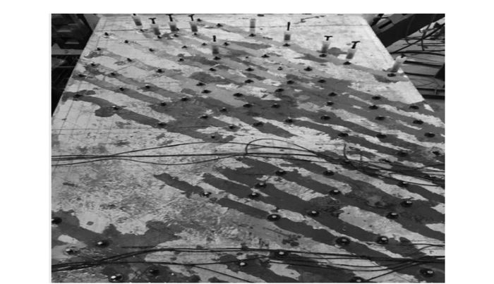 | 图 4 模型梁顶板裂缝灌浆 Fig. 4 Crack grouting of model beam roof |