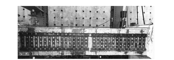 | 图 6 模型梁腹板锚钢加固 Fig. 6 Steel anchoring reinforcement of model beam web |