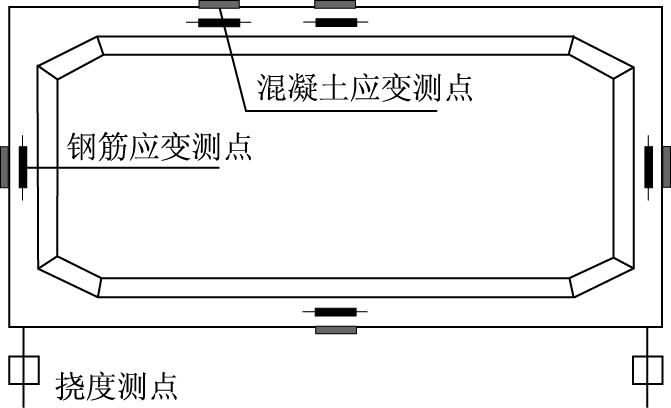 模型梁位移及应变测点布置在各支点、2分点及各4分点位置,其截面挠度及应变测点如图 7所示。