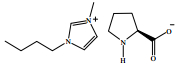 目前也有少量的直接用手性离子液体单独作为的手性选择剂用于拆分的研究。Stavrou等[33]利用5种氨基酸阳离子类手性离子液体单独用作手性拆分剂,研究了体系对于联萘酚磷酸酯对映体的毛细管电泳手性拆分。当以乳酸叔丁基L-丙氨酸酯(L-AlaC4Lac)作为拆分剂,手性离子液体浓度为60 mmol×L-1,pH值为8时,13 min内即可成功分离联萘酚磷酸酯对映体。Ma等[34]利用手性离子液体N, N-二甲基麻黄碱双(三氟甲基磺酰亚胺)盐([DMP] NTf2)单独作为手性选择剂与背景电解质添加剂用于奥美拉唑与贝雷拉唑药物对映体的毛细管电泳拆分。在缓冲液乙腈:甲醇=4:6(v/v),手性离子液体浓度60 mmol×L-1,乙酸铵浓度5 mmol×L-1时,可获得较好的拆分效果,分离度分别为0.95和0.83。作者认为手性分离主要由手性离子液体与对映体间的离子对作用和氢键作用所致。