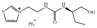 Liu等[11]将手性离子液体应用到液相色谱拆分中,利用烷基咪唑L-脯氨酸盐作为手性配体与Cu2+作为流动相添加剂对4对氨基酸对映体进行了拆分。发现氨基酸离子液体作为手性配体的拆分效果好于同类氨基酸,分离度3.26~10.81。实验中对映体的分离度及保留时间均随咪唑烷基链长增长而增加,作者推测分离机理为咪唑阳离子通过烷基链的疏水作用吸附在C18柱表面,并通过离子对与含Cu2+的三元络合物相互作用。而Bi等[12]在使用多种咪唑基亮氨酸离子液体作为流动相添加剂分离氧氟沙星对映体时却发现,随咪唑烷基链长的增长,氧氟沙星拆分的分离度及选择性变差。作者认为这是因为氧氟沙星作为药物对映体,空间体积较大,较长的烷基链有较大的空间位阻,且与Cu2+静电作用弱,不利于稳定三元络合物的生成。