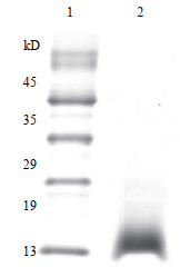 图 6 HGRNA多肽纯化结果 Fig.6 Purification results of HGRNA 1. marker lane 2. target lane |