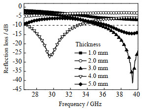 图 10 HPMMT-GS-10复合材料在1.0~5.0 mm厚度下的RL性能 Fig.10 RL performance of HPMMT-GS-10 composite at thickness of 1.0-5.0 mm |