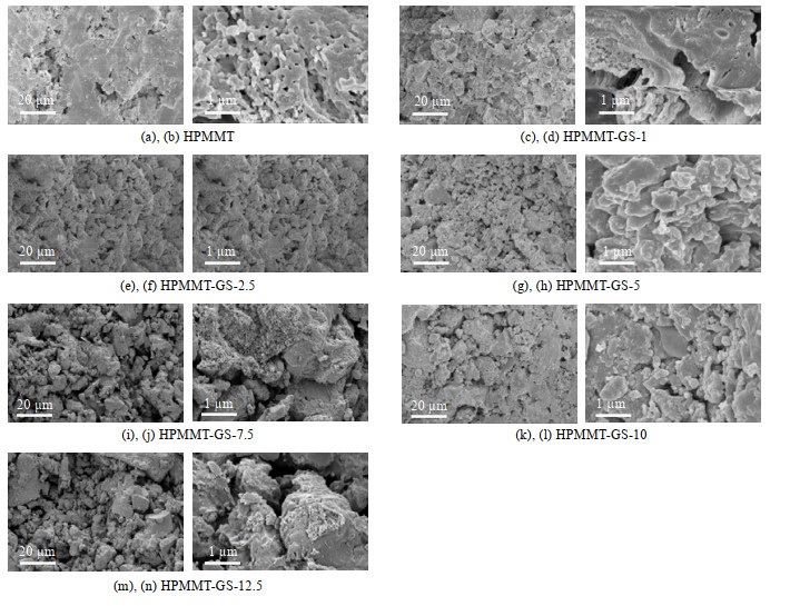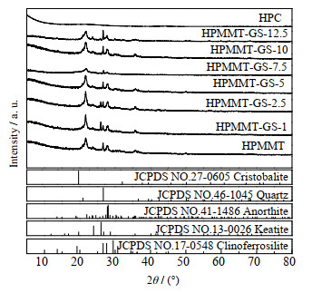 图 4 HPMMT、HPC和HPMMT-GS复合材料的XRD图 Fig.4 XRD patterns of HPMMT, HPC and HPMMT-GS composites |