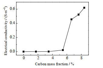 图 9 陶瓷中碳质量分数对HPMMT和HPMMT-GS复合材料电导率的影响 Fig.9 Effect of carbon mass fraction in ceramic on the electrical conductivity of HPMMT and HPMMT-GS |