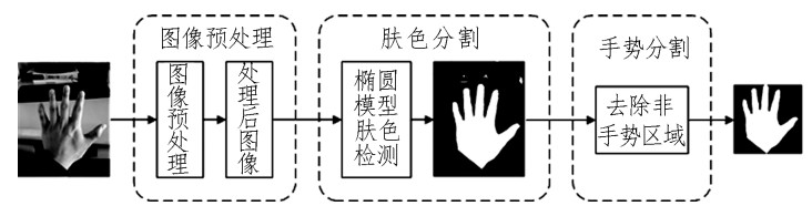 | 图 1 手势分割算法流程图 Fig. 1 Gesture segmentation algorithm flow chart |