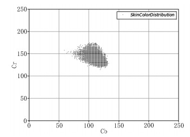 | 图 2 肤色在Cb-Cr平面中呈现椭圆分布 Fig. 2 Color in Cb-Cr plane presents elliptical distribution |