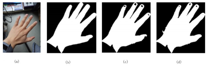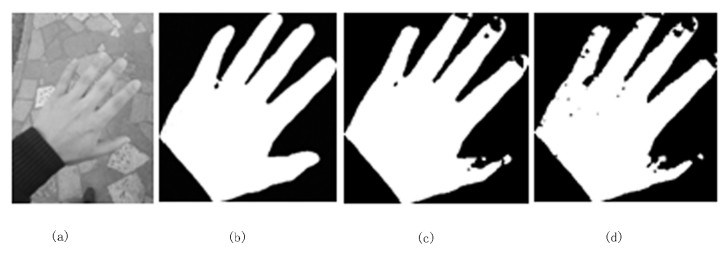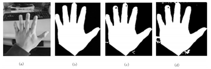 | 图 3 基于肤色检测的手势分割效果图 Fig. 3 Gesture segmentation rendering based on skin color detection |