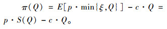 下游企业期初制定批发价格wB,期末需求发生后以价格p卖出所订购的min{ξ, QB}的产品,因此下游企业的最优化问题为