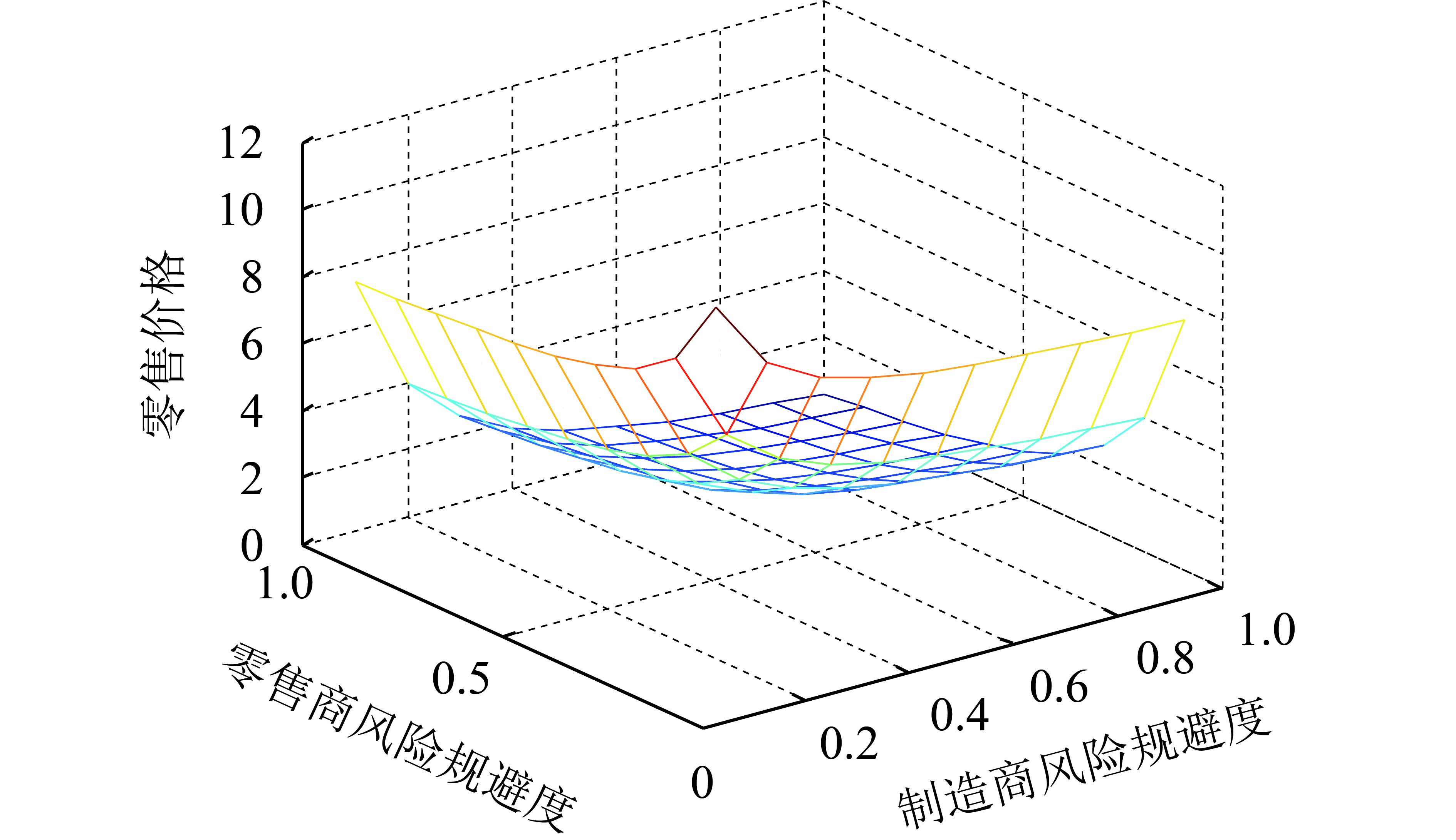 图 3 风险规避对零售价格的影响 Fig. 3 Impact of risk aversion on retail prices |