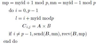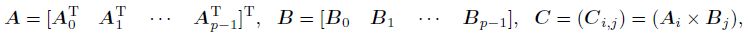 First,matrix A is divided by rows into p blocks (p is the number of processors),while matrix B is divided by columns into p blocks,