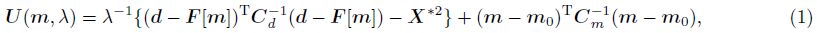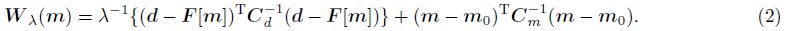 Quite different from other inversion schemes,in Occam’s scheme,the Lagrange multiplier λ is a variable of objective functional. By assigning different values to λ in each iteration,it brings the RMS misfit down to the desired level. When λ is given,Eq.(1) can be simplified as