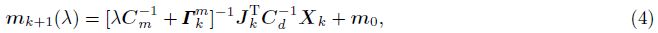 The data-space Occam approach is a variant of the original Occam approach in model space. Provided that the solution at the kth iteration can be represented by a linear combination of rows of the smoothed sensitivity matrix CmJT,