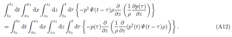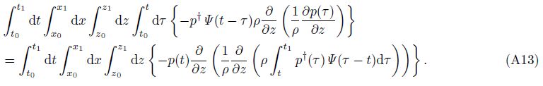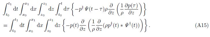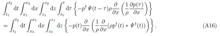 Inserting Eqs.(A8), (A15), and (A16)into Eq.(A2), we obtain the adjoint wave equations