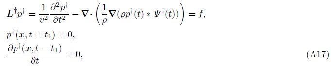 The derivation of the adjoint operator refers to appendix A. The adjoint wavefield is defined as