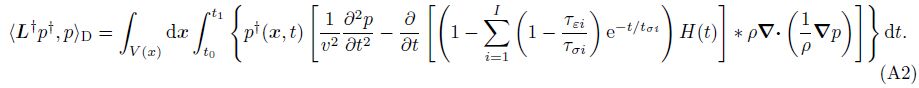 6 Appendix A: Derivation of Adjoint Visco-Acoustic Wave Equation OperatorWith the definition of scale product operator in data space in Eq.(10), the adjoint operator satisfies