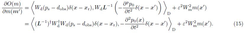 Inserting Eq.(14)into to Eq.(13), and using the adjoint operator of the forward modeling operator, the final gradient can be expressed as