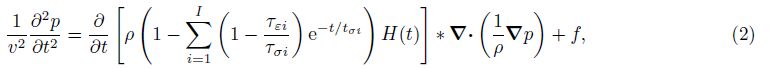 2 VISCO-ACOUSTIC WAVE EQUATION BASED ON GSLS AND ITS LINEARIZATION 2.1 Visco-Acoustic Wave Equation Based on GSLSThe visco-acoustic wave equation based on GSLS(Robertsson et al., 1994)is