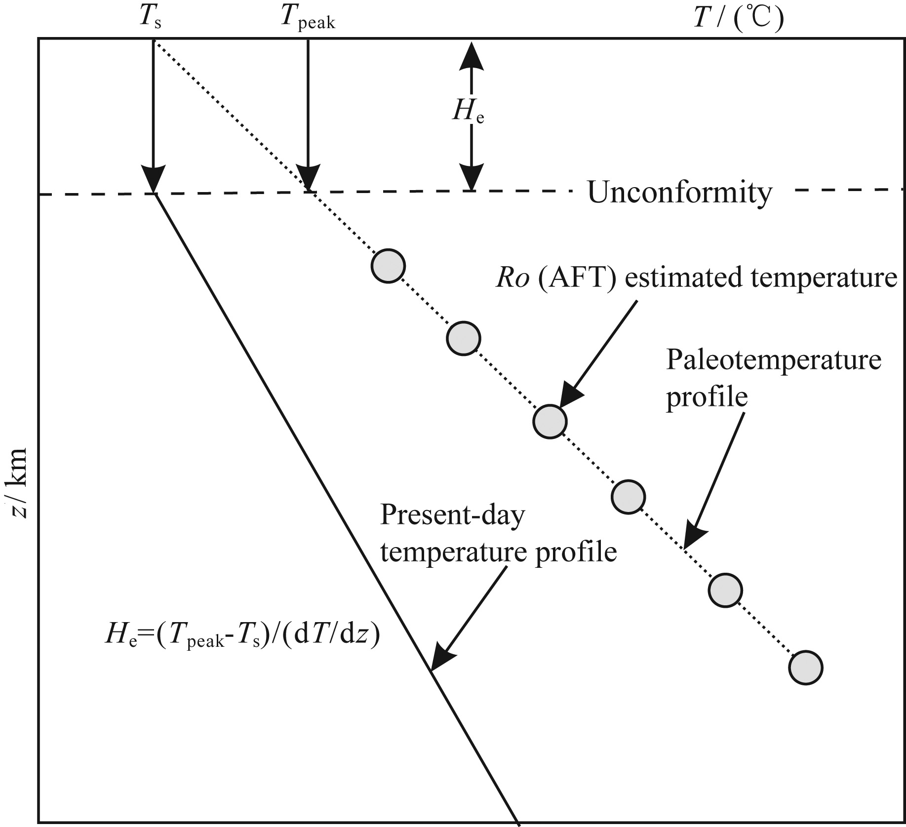 Fig.3 Schematic of the paleogeothermal gradient method for erosion thickness reconstruction |