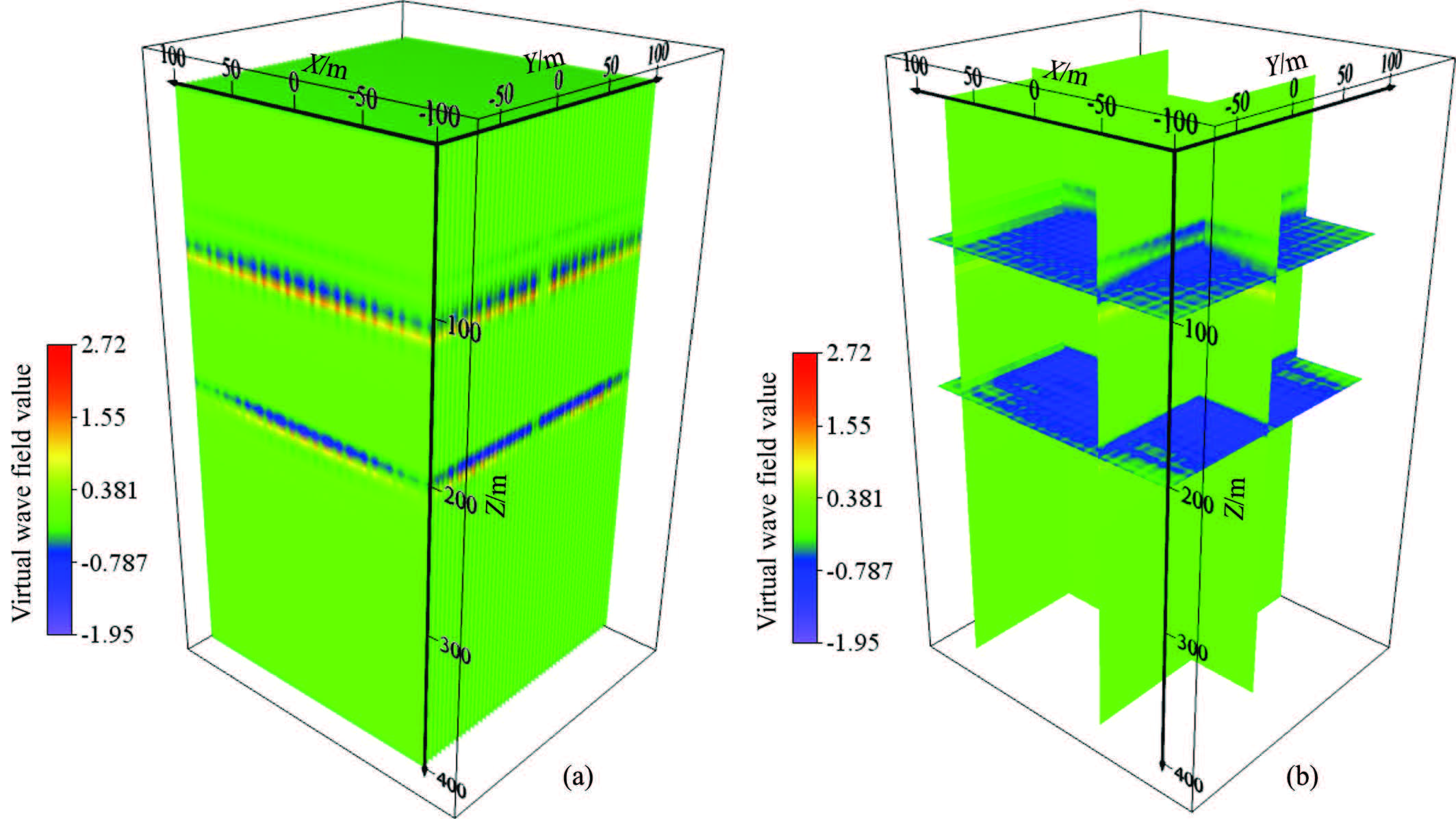 Fig.9 Results of 3-D wave field transform:(a)Three-dimensional diagram;(b)Slice diagram |