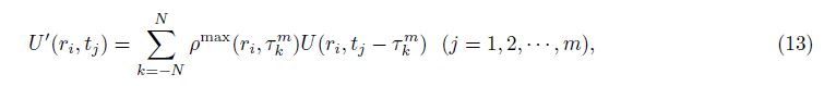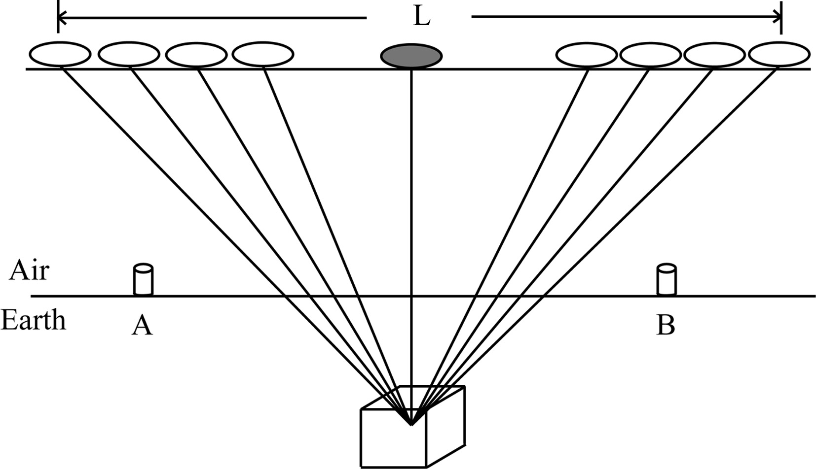 Figure 5 is a sketch of inverse synthetic radar imaging, where A and B indicate the two current electrodes on the ground which excite the transient electromagnetic field in the subsurface. When the transient electromagnetic field reaches the geological body, it will induce secondary eddy-currents. After the transmitter current is cut off, electromagnetic signals decaying with tine of the secondary magnetic field induced by a secondary eddy-current can be received in the air. As the electromagnetic signals within the L aperture range from the same geological body have correlation characteristics, we take the central point of the L aperture range as the reference point i and mark the wave field of this point as U(ri, τ), here ri is the distance from point i to any point(with a serial number of -N, · · ·, N)within the L aperture range, and τ is the relative moving amount. We take the maximum correlation coefficient as the weight coefficient, which is derived from correlation calculation of the reference point with each point within the L aperture range. We multiply the weight coefficient with the wave field value of each point and stack them to the central point, the composite value of the central point can be written as